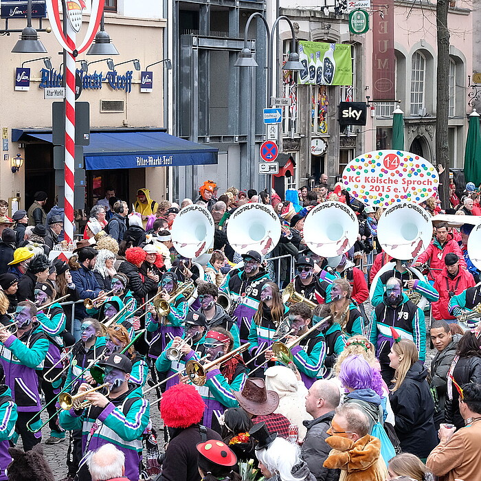 Auch wenn man die anderen Jecken und die Liedtexte nicht kennt: einfach mitsingen, mitschunkeln und mittanzen! Köln ist an Karneval eine große Familie, man feiert zusammen und spätestens beim dritten Mal sitzt auch der Refrain.