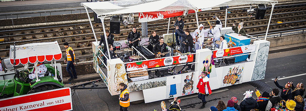 Das umfassende Programm wird außerdem durch diverse Veranstaltungen ergänzt, die den Künstlern die Möglichkeit bieten, sich auf großen und kleinen Bühnen auszuprobieren. Die exklusivste Bühne ist dabei sicherlich der Musikwagen des Festkomitees: eine einmalige Chance für Musiker und Bands, im Kölner Rosenmontagszuges mitzufahren und vor hunderttausenden von Jecken zu spielen.