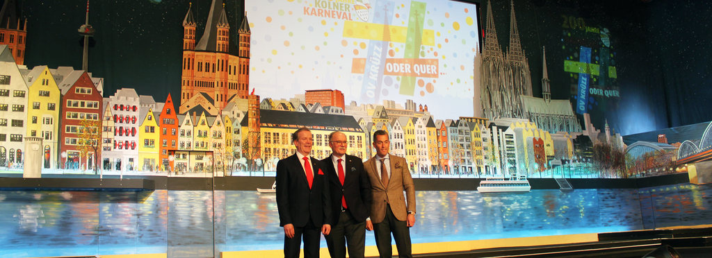 Dekoration und Bühnengestaltung im traditionsreichen Saal sind immer wieder eine Herzensangelegenheit: „Hier im Gürzenich werden die Fernseh- und Hörfunksitzungen aufgezeichnet, hier proklamieren wir das Dreigestirn. Man kann deshalb wohl sagen, hier schlägt das Herz des Sitzungskarnevals“, beschreibt Festkomitee-Präsident Christoph Kuckelkorn. „Wir freuen uns deshalb sehr, dass wir gemeinsam mit unseren Partnern für diesen tollen, festlichen und kölschen Rahmen sorgen können, der ja auch das Bild des Kölner Karnevals insgesamt nach außen trägt.“ Beim Bühnenaufbau wurden dabei nicht nur die Bedürfnisse der WDR-Fernseh- und Hörfunkproduktionen beachtet. Die in mehreren Ebenen aufgebaute Bühne ist auch für die Mitgliedsgesellschaften im Festkomitee, die hier ihre Sitzungen veranstalten, flexibel nutzbar. So werden vielfältige jecke Formate möglich, egal ob sie nun als traditionelle Karnevalssitzung oder als Fastelovends-Show inszeniert sind.