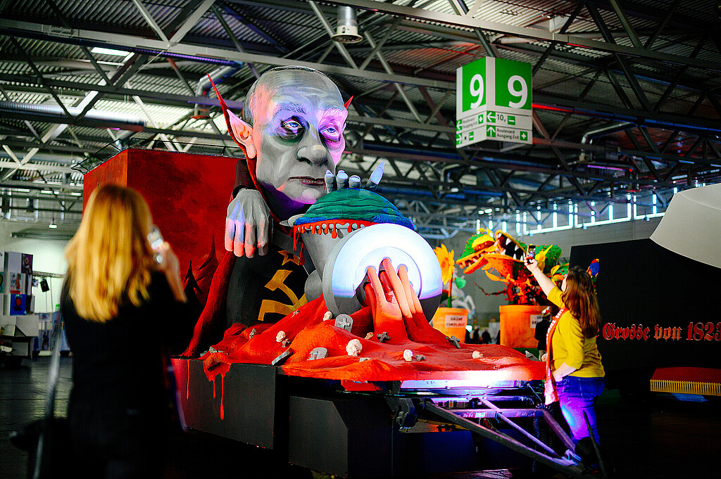 Kölner Karneval: Persiflagewagen des Rosenmontagszuges vorgestellt