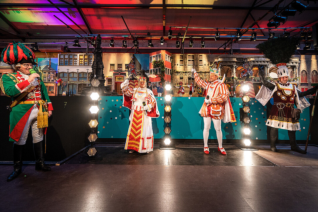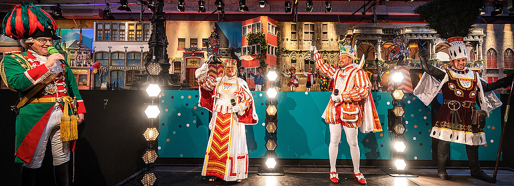 Sessionseröffnung im Miniformat: Kölner Dreigestirn mit jeckem Countdown aus der Kulisse des Hänneschen-Theaters.