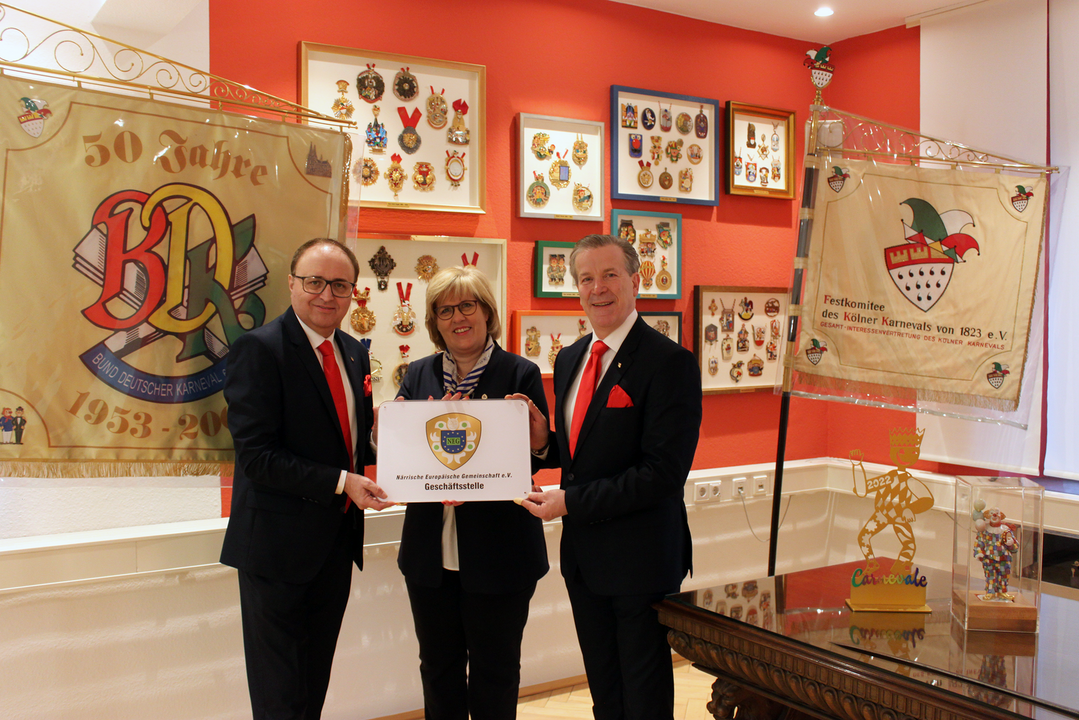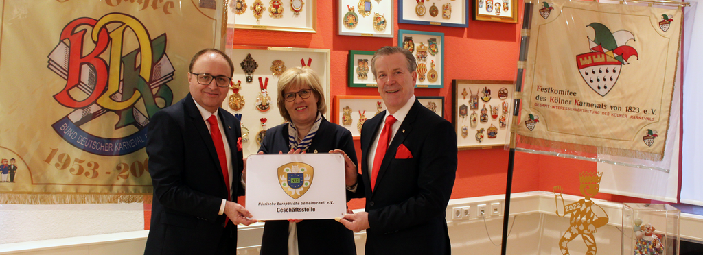 Die Präsidentin der Närrischen Europäischen Union e.V., Petra Müller, hat zusammen mit Christoph Kuckelkorn, Präsident des Festkomitees Kölner Karneval, den Sitz der Geschäftsstelle der Närrischen Europäischen Gemeinschaft e.V., im Maarweg 134 in Köln-Ehrenfeld eröffnet. Erich Ströbel, Vorstandsmitglied im Festkomitee Kölner Karneval e. V. und Beisitzer im Bund Deutscher Karneval, wird ab sofort die Leitung der Geschäftsstelle in Köln übernehmen.