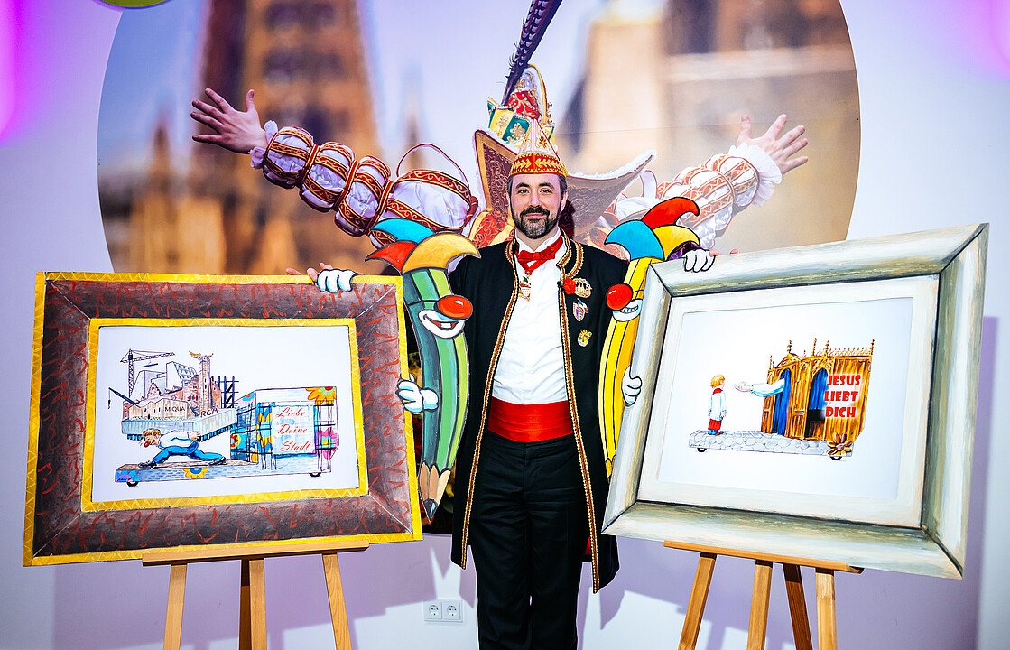 Zugleiter Marc Michelske präsentierte außerdem erstmals die Entwürfe für die politischen Persiflagen des Rosenmontagszuges. Insgesamt 19 Motive werden zu sehen sein, zwei davon bleiben bis Rosenmontag geheim. Vier Entwürfe wurden schon vorab veröffentlicht und unter Pressefotos zu finden. Das diesjährige Motto „FasteLOVEnd – wenn Dräum widder blöhe“ ist dabei der Rote Faden, der sich auf allen Wagen wiederfindet.