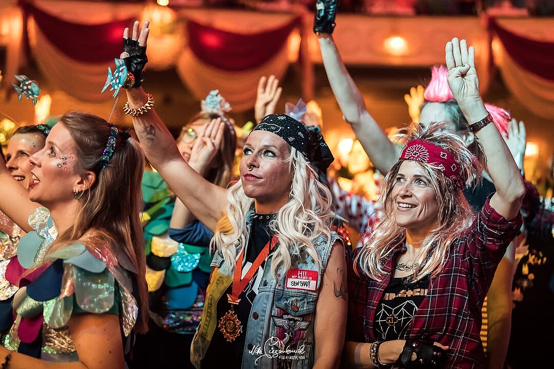 Wer einmal auf unserer Mädchensitzung war, weiß, dass hier eine ausgelassene Stimmung herrscht. Hier wird lauthals gesungen, geschunkelt, getanzt und geklatscht, egal ob unsere Tanzgruppen auf der Bühne ihre akrobatischen Tänze aufführen oder einer der tollen Bands den Saal rockt.