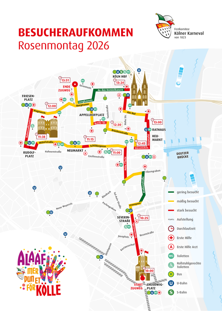 • Ab 12:00 Uhr enden aus dem Rechtsrheinischen alle Linien für die Fahrgäste an der Deutzer Freiheit.